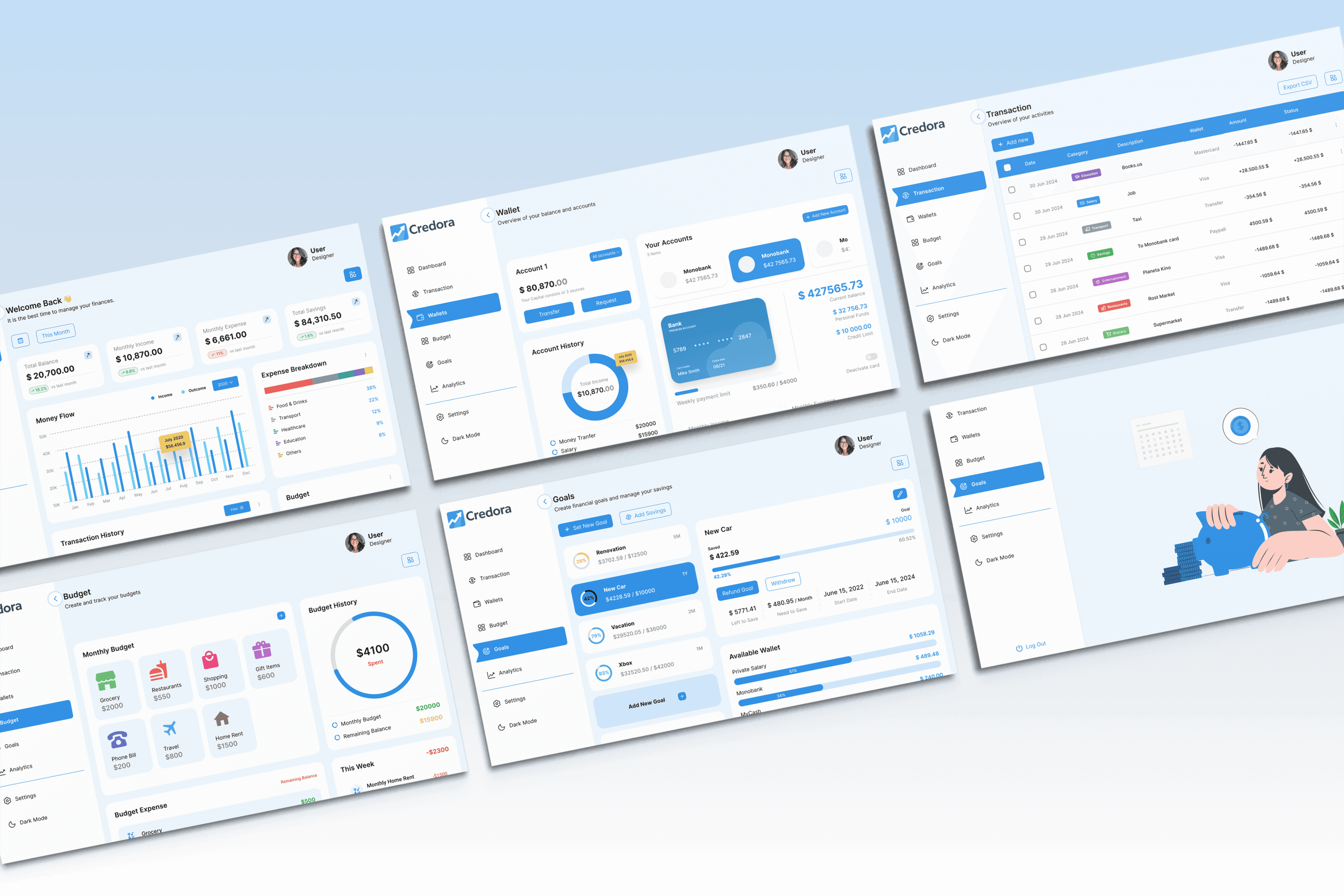 Credora is a self-initiated fintech dashboard concept created to explore complex, data-heavy interfaces while strengthening my UI system thinking and foundational UX understanding.